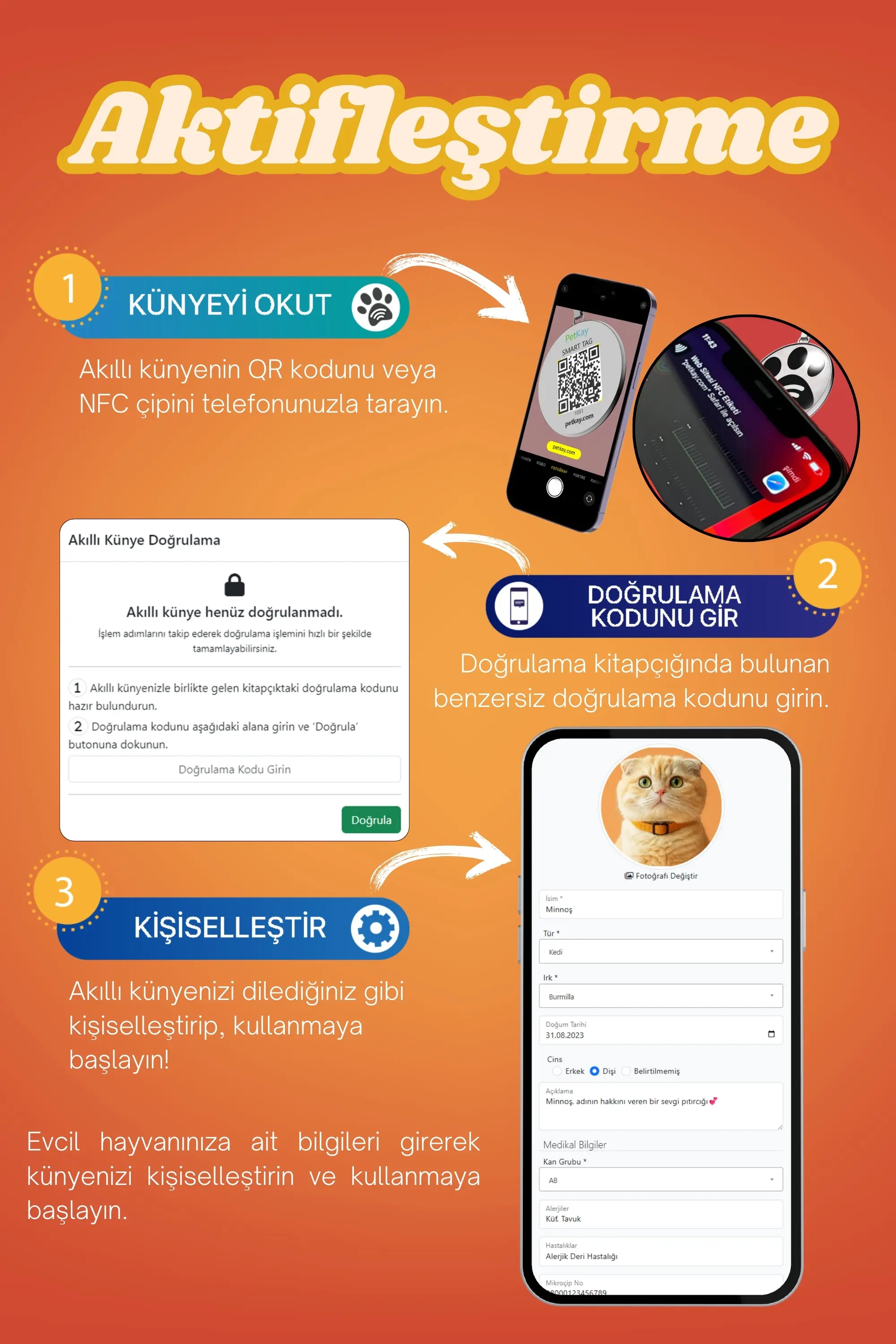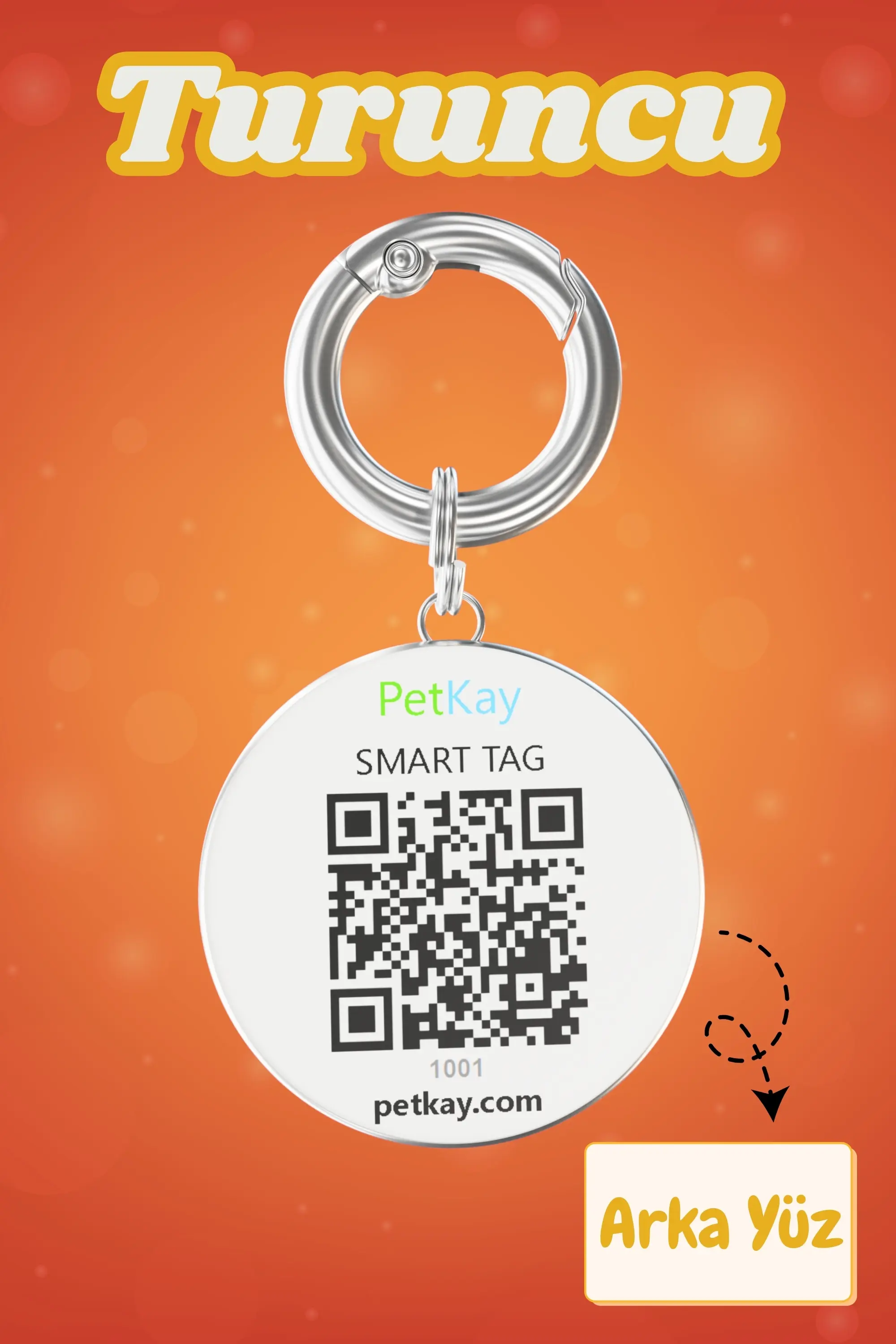 Petkay Kediler İçin Akıllı Künye NFC Akıllı Tasma Künyesi QR Kod Künye Paslanmaz Çelik Turuncu (2,5 x 2,5 cm)