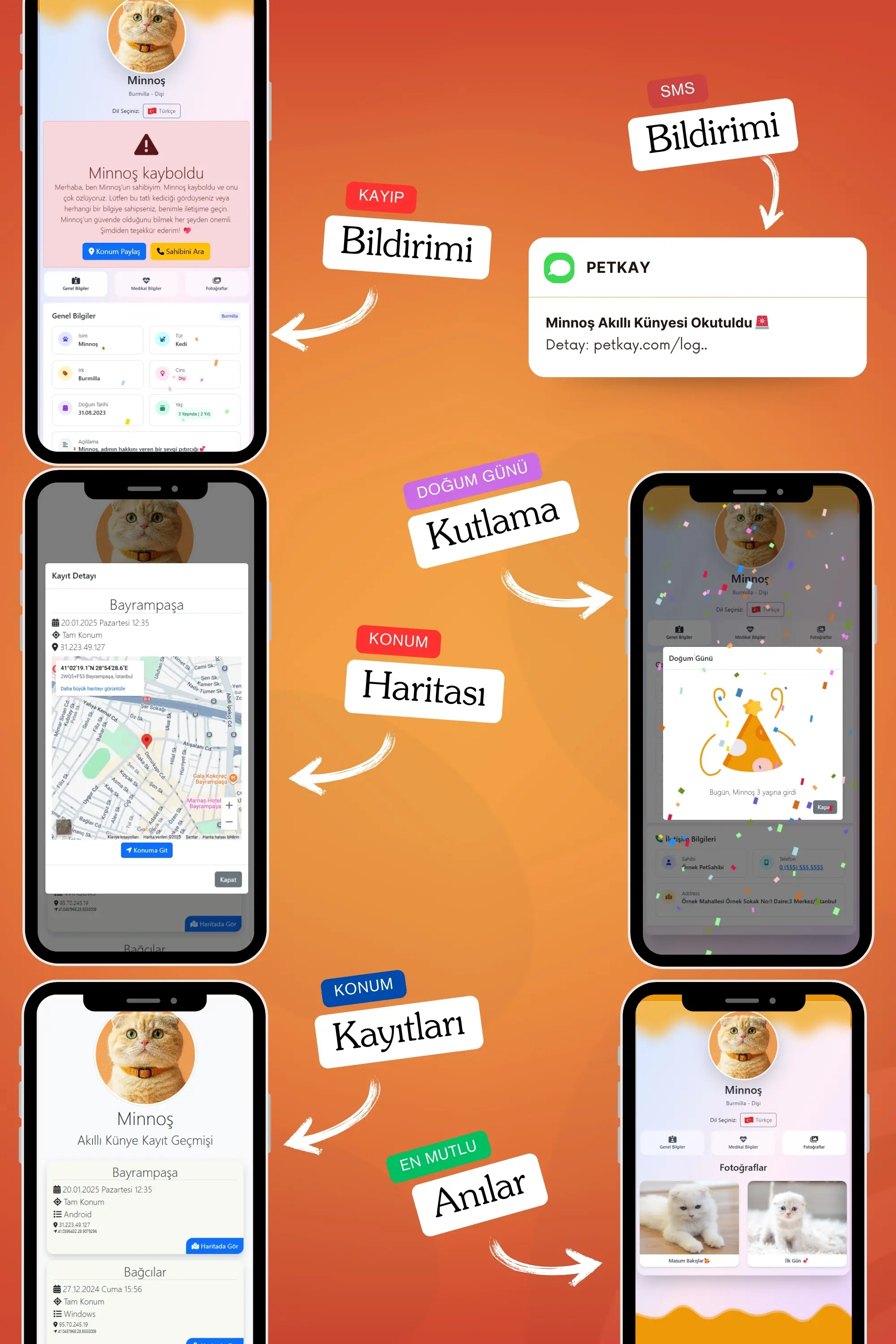 Petkay, kedilerin güvenliği için özel olarak tasarlanmış NFC ve QR kod teknolojilerine sahip akıllı bir künyedir. 2,5 x 2,5 cm boyutundaki şık paslanmaz çelik tasarımı sayesinde hem estetik hem de dayanıklı bir çözüm sunar. Bu künye, kaybolma riskine karşı modern bir koruma sağlar; QR kod veya NFC özelliği ile tarandığında, evcil hayvanın sahibiyle anında iletişime geçilebilir. Suya dayanıklı yapısı ve hafifliği sayesinde kedinizin günlük aktivitelerini kısıtlamadan sürekli kullanılabilir. Petkay, hem işlevsel hem de tarz sahibi kediler için ideal bir çözümdür!