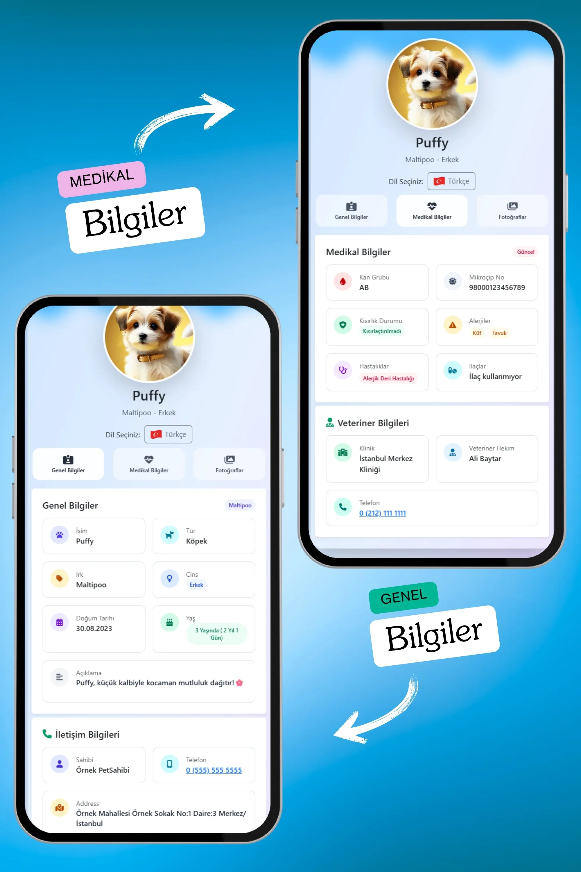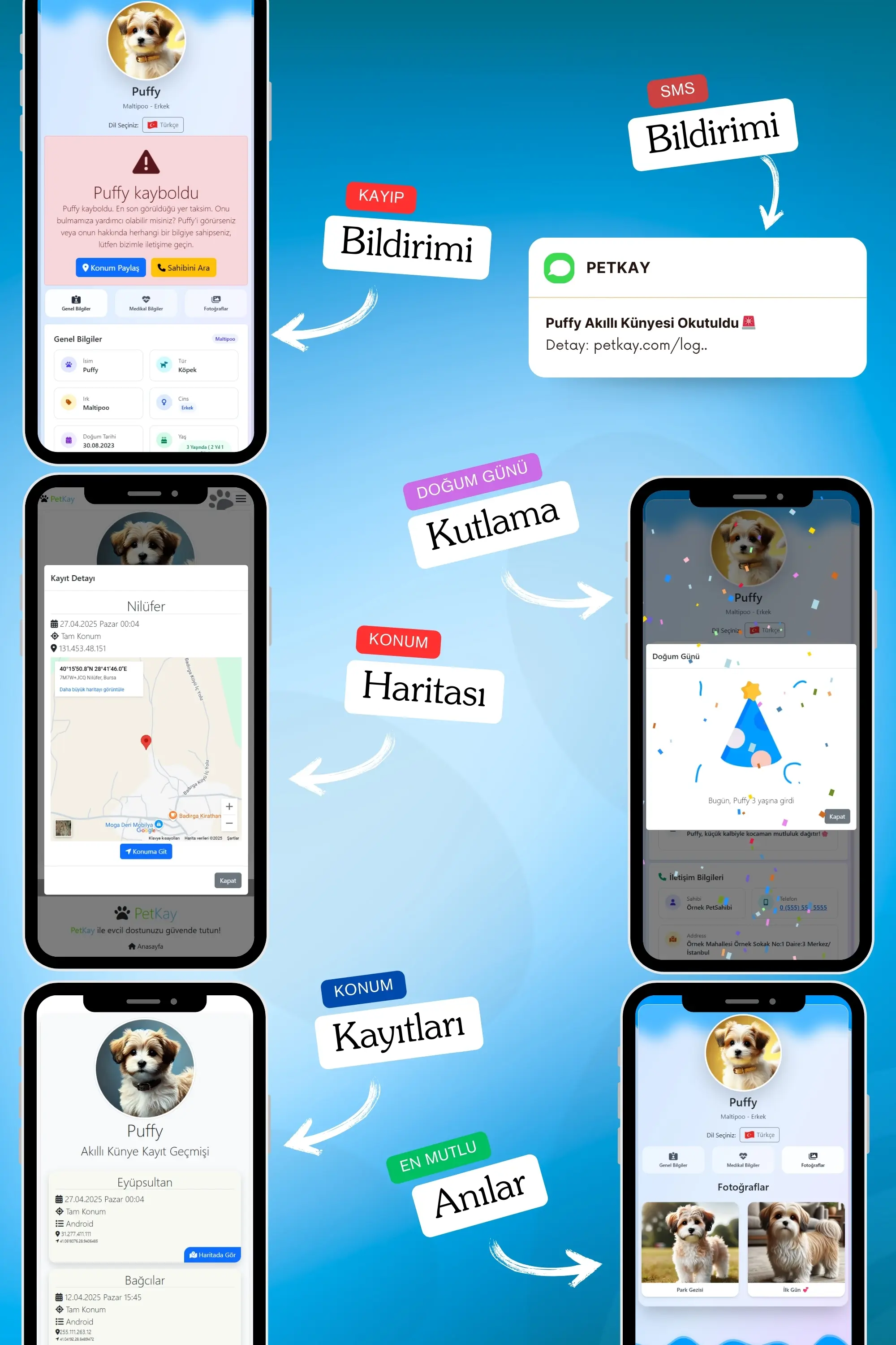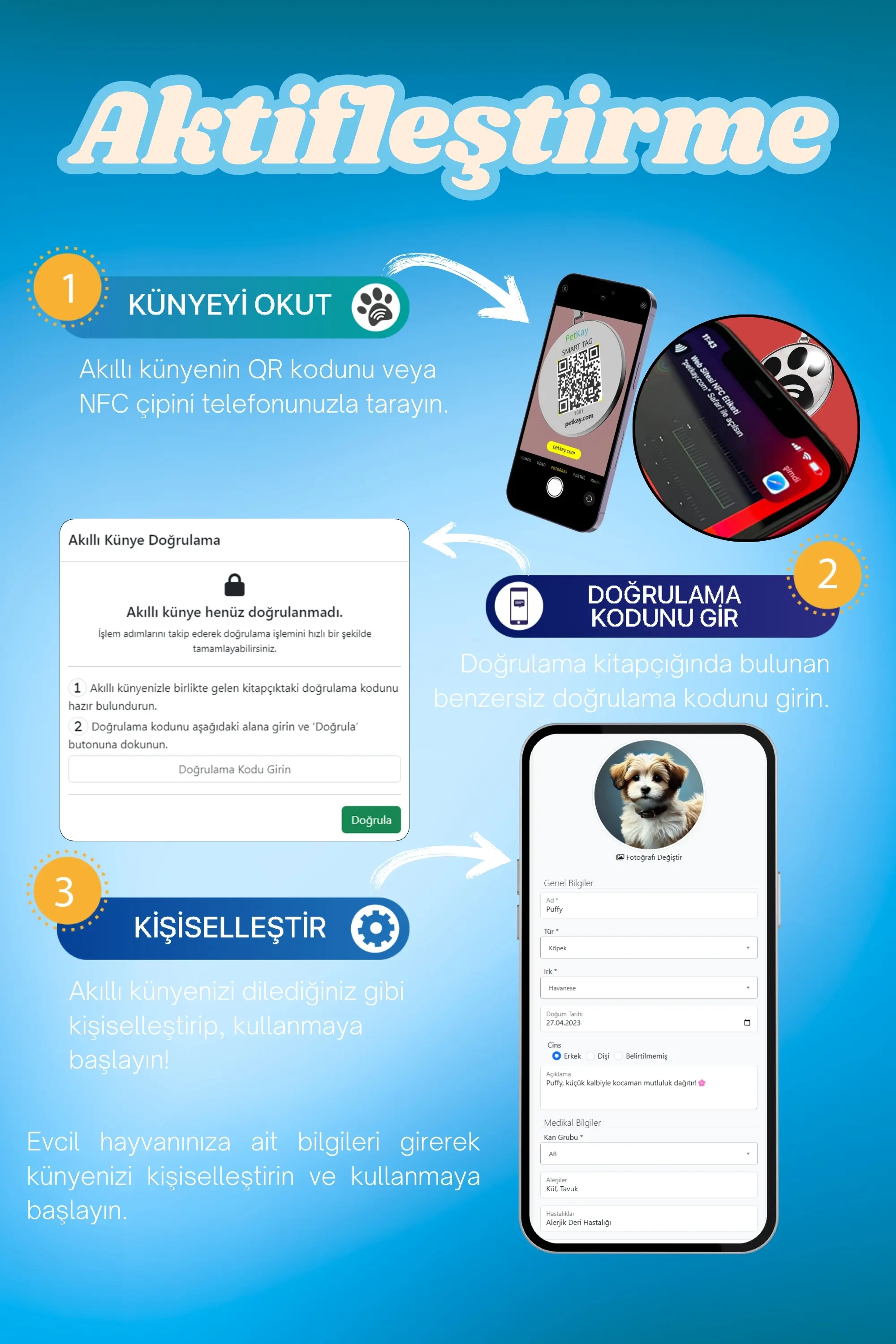 Petkay, köpeklerin güvenliği için özel olarak tasarlanmış NFC ve QR kod teknolojilerine sahip akıllı bir künyedir. 2,5 x 2,5 cm boyutundaki şık paslanmaz çelik tasarımı sayesinde hem estetik hem de dayanıklı bir çözüm sunar. Bu künye, kaybolma riskine karşı modern bir koruma sağlar; QR kod veya NFC özelliği ile tarandığında, evcil hayvanın sahibiyle anında iletişime geçilebilir. Suya dayanıklı yapısı ve hafifliği sayesinde köpeğinizin günlük aktivitelerini kısıtlamadan sürekli kullanılabilir. Petkay, hem işlevsel hem de tarz sahibi köpekler için ideal bir çözümdür!