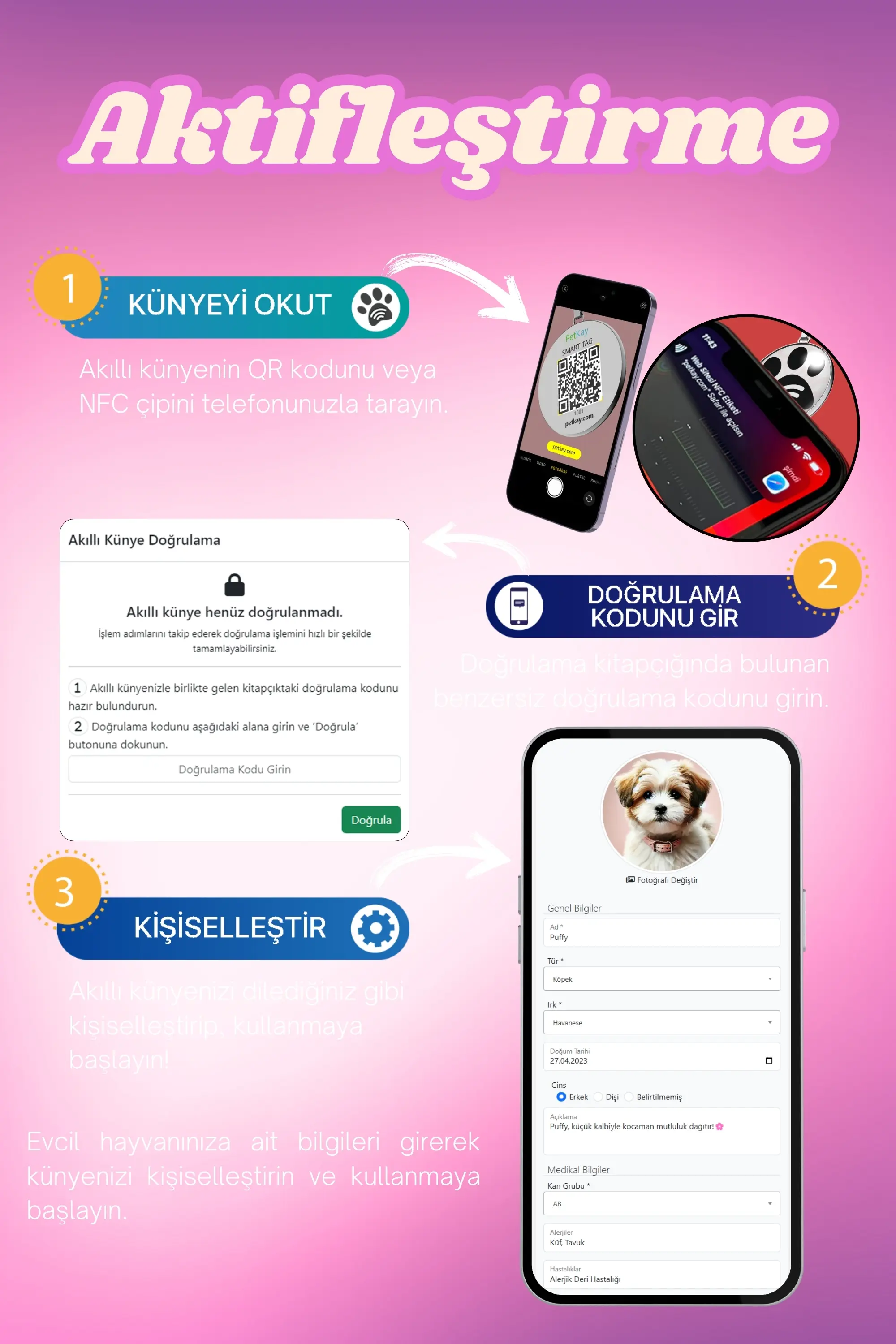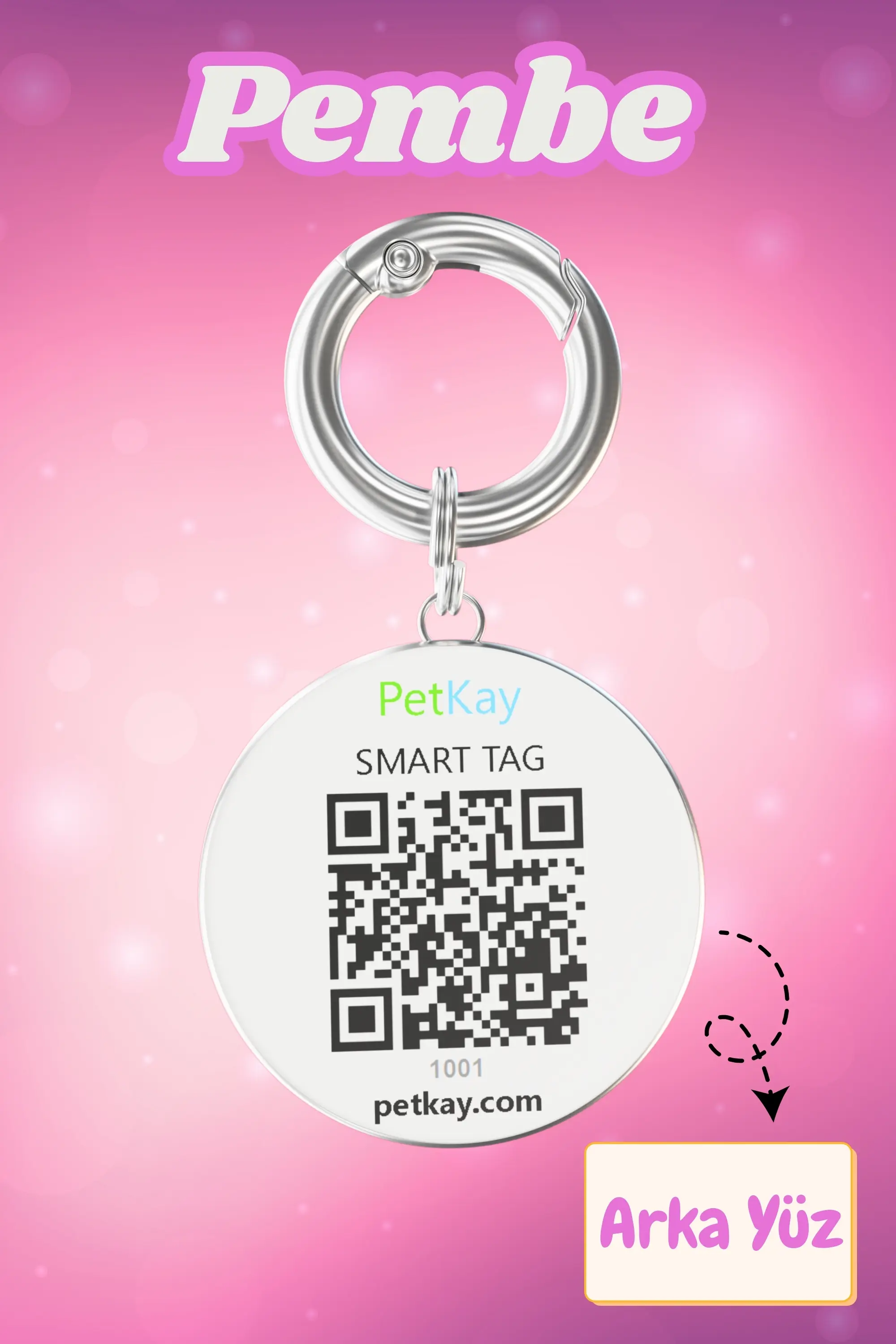 Petkay Köpekler İçin Akıllı Künye NFC Akıllı Tasma Künyesi QR Kod Künye Paslanmaz Çelik Pembe (2,5 x 2,5 cm)