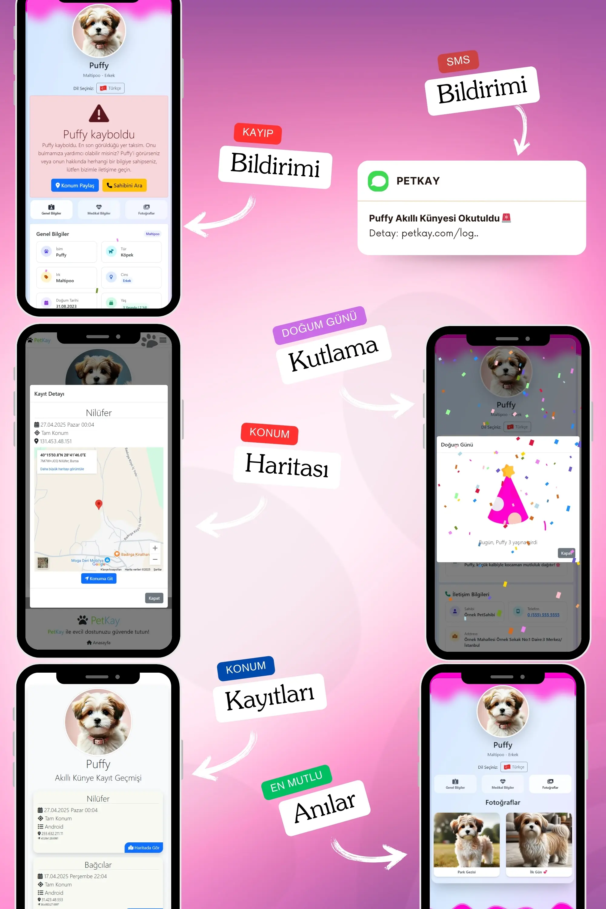 Petkay, köpeklerin güvenliği için özel olarak tasarlanmış NFC ve QR kod teknolojilerine sahip akıllı bir künyedir. 2,5 x 2,5 cm boyutundaki şık paslanmaz çelik tasarımı sayesinde hem estetik hem de dayanıklı bir çözüm sunar. Bu künye, kaybolma riskine karşı modern bir koruma sağlar; QR kod veya NFC özelliği ile tarandığında, evcil hayvanın sahibiyle anında iletişime geçilebilir. Suya dayanıklı yapısı ve hafifliği sayesinde köpeğinizin günlük aktivitelerini kısıtlamadan sürekli kullanılabilir. Petkay, hem işlevsel hem de tarz sahibi köpekler için ideal bir çözümdür!